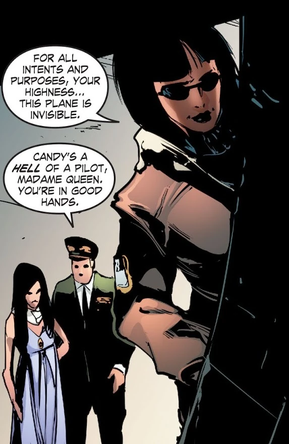 Considered to be an excellent pilot, she was chosen to escort Queen Hippolyta back to the Island of Themyscira in a virtually undetectable plane, which she called the "Invisible Plane".