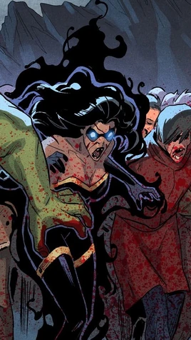 As Wonder Woman stopped Jotunheim from falling, Raza Kattuah held off the horde to let others barricade themselves, before Wink teleported him away. Hawkman, Hawkgirl and Wonder Woman pushed all the Anti-Living back into Nightshade's portal, trapping them in the Land of the Nightshades temporarily. After Adam reunited with them near the sea, she would create another portal when Adam reunited with the horde.[3]