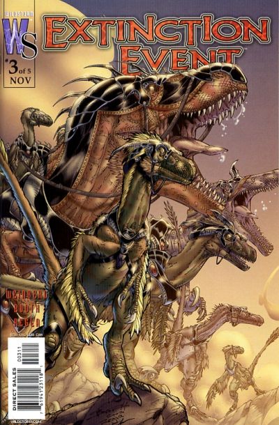 "Rise of the Raptors": The synopsis for this issue has not yet been written.Extinction Event #3 is an issue of the series Extinction Event (Volume 1) with a cover date of November, 2003. It was published on September 3, 2003.