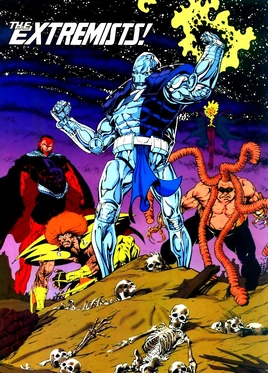 - The Extremists' individual members are pastiches of Marvel Comics villains.