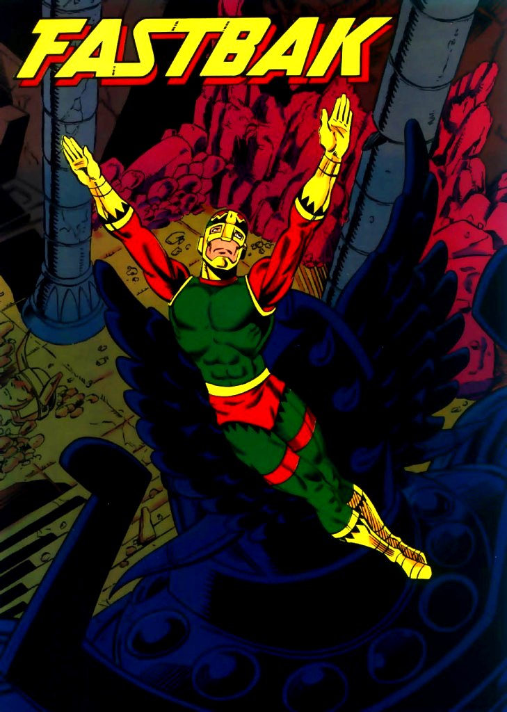 Fastbak is known for his ability to travel at tremendous speeds with the aeropads he invented for his boots. Once he even outpaced the harbinger of death, the Black Racer, as well as a phalanx of Apokoliptian Parademons, to save the life of fellow New God and friend Esak. In addition, Fastbak is an accomplished singer and composer of ballads. Constantly striving for greater velocities, Fastbak continues to tinker with his aeropads while helping to protect New Genesis from Apokolips.