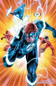 Wally's aunt Iris told him and Wallace that Barry Allen hadn't been seen since he left on a mission with Justice League Incarnate.[53] The entire Justice League also subsequently disappeared and only Black Adam returned, claiming that the League and Justice League Incarnate had all been killed by Pariah and that the Great Darkness was preparing to invade the Multiverse. Hal Jordan did not trust the former supervillain and encouraged Wally to look for Barry.[54]