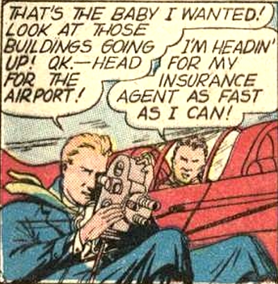 Flash Fulton's boss at Acme Newsreels was called "Gabby" and his sound man went by "Andy". Andy was prone to getting parking tickets,[3] and once crashed Fulton's car into a a lamp post.[4]