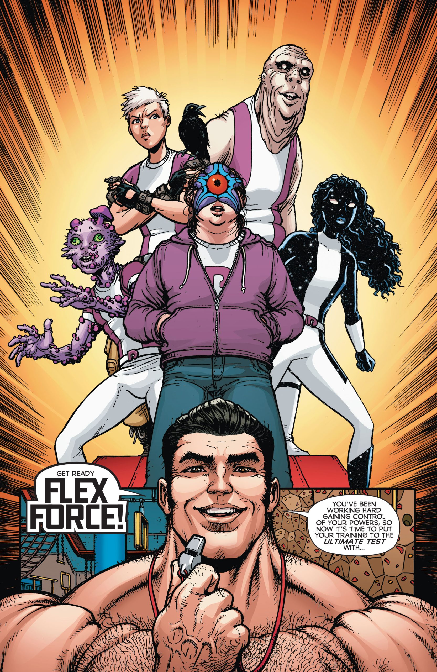 Flex Force is a team of trainee metahumans rescued by the Doom Patrol and trained by Flex Mentallo.