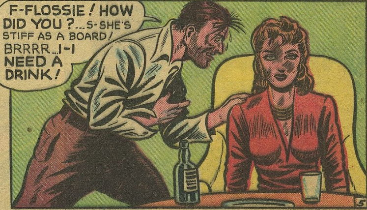 Flossie and her partner Smokey saw Quicksilver performing in a circus after watching it for several days in a row while planning to rob it. Flossie turned the lights off during the show and Quicksilver and his friend Joe checked the treasurer's tent, only for Joe to be shot by Smokey. Quicksilver chased after the criminals by car and later canoe to the Thousand Islands, where Flossie and Smokey had an island hideout. While having a celebratory drink Flossie discovered that Smokey had poisoned her and planned to keep all of the money to himself, later burying her body at night. While sleep walking the horror of his crime caused him to dig up Flossie's corpse and place it in her favorite chair, only to be horrified in the morning to find her corpse out of the ground. After this repeated for several days Smokey's mental state had deteriorated and he shot Flossie in the head in an effort to make sure she could not come back. He committed suicide and Quicksilver found both of the bodies.