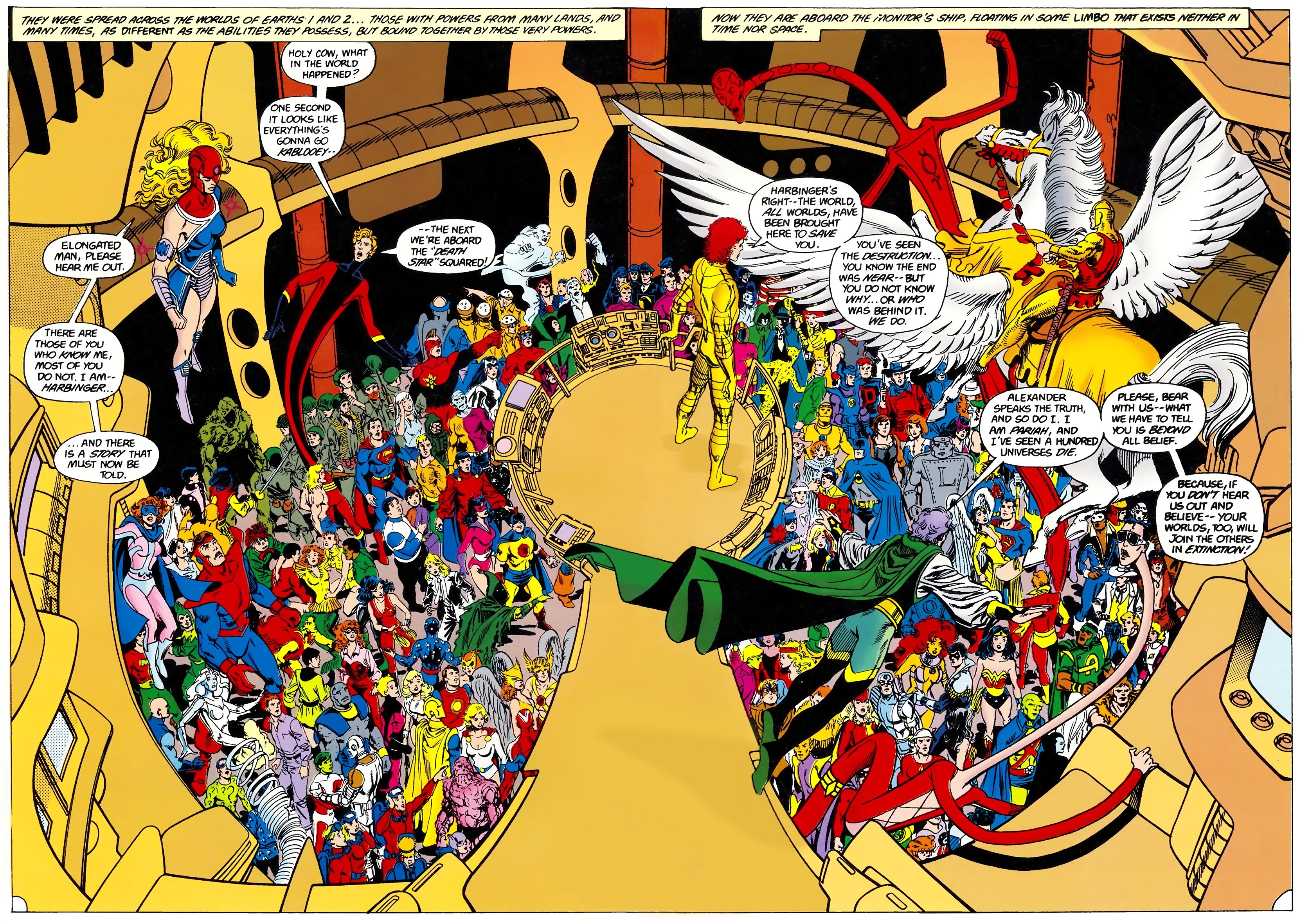 - The large spread of all the villains in the Secret Society is an homage to Crisis on Infinite Earths, which contained a similar image with a large number of heroes.[1]