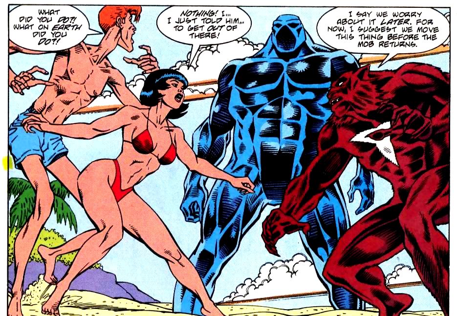 An alien of unspecified race, Gaius' immense powers were manipulated and abused by his cruel family, who forced him to commit terrible atrocities. Appalled by his actions, he fled from them, disguising his appearance and hiding on Earth, where the guilt of his actions shocked his system into shutting down entirely, responding only to direct commands by carrying out the requested actions immediately and without thinking. He encountered members of Justice League International and his powerful body was temporarily inhabited by Erewhon. Before long, his family found him on Earth. This caused him to regain full sensibility and he allied himself with the heroes of the Justice League against them. He left Earth with his defeated family, vowing to use his powers to reform his family.