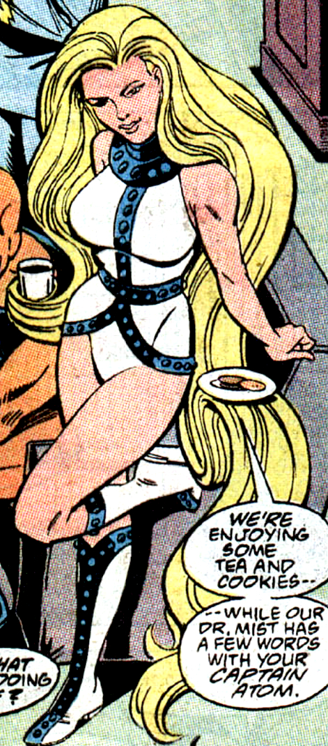Godiva is a British heroine with long, prehensile hair. A member of the Global Guardians, she was originally created for the Super Friends tie-in comic, and was later used in the mainstream continuity. In the New 52 reboot, Godiva is a member of the JLI. Godiva was created by E. Nelson Bridwell and Ramona Fradon, first appearing in Super Friends #7. (1977)