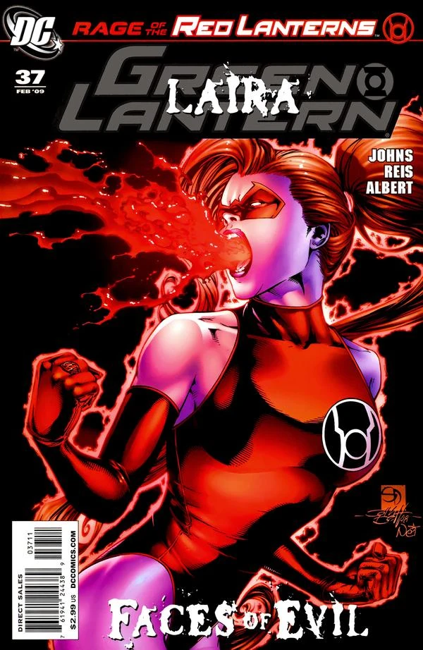 Saint Walker tries to convince Hal Jordan to convert to a blue power ring while they fly in pursuit of Sinestro with Brother Warth. Jordan leaves the Blue Lanterns behind and finds that while near Ysmault his ring has interference and he cannot contact any other Green Lanterns. He finds Sinestro bleeding attached to a Red Lantern crucifix. Jordan has flashbacks to previous experiences with Sinestro. He is suddenly attacked by Red Lanterns Vice, Bleez, Veon, Laira, and Atrocitus. His ring's power levels rapidly drop as he is submerged in the red waters. He sees Laira as a Red Lantern for the first time. Atrocitus almost looses Laira onto Hal, but several Sinestro Corps members distract the Red Lanterns in an attempt to rescue Sinestro. Saint Walker and Brother Warth arrive and quickly incapacitate most of the Red and Yellow Lanterns, but Hal is attacked by Laira and promises to never let her get lost again. When he does this Laira asks him to help her, but is murdered by Sinestro. Jordan flies into a rage and attacks Sinestro, planning to kill him. This is only stopped by Jordan receiving a Red Lantern Ring, becoming a Red Lantern.