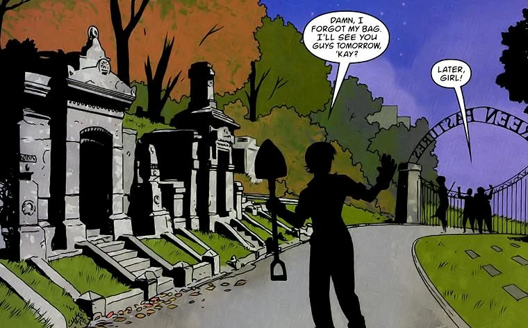 Green Pastures Cemetery is a graveyard located in Eugene, Oregon. It is the workplace and home of zombie Gwen Dylan.