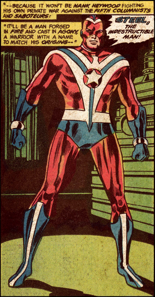 Hank Heywood is a name passed down through several generations of heroes. The original Hank Heywood was crippled during World War II, and a scientist used cybernetic upgrades to make him extremely powerful. He took the name Commander Steel, originally just Steel, and became a member of the All-Star Squadron. His grandson Hank Heywood III also had to be rebuilt after an injury, and he became the second Steel working with Justice League Detroit. Heywood's other grandson Nathan became Citizen Steel as a member of the Justice Society. On Earth 2 in the New 52 reboot continuity, Hank Heywood, Jr. is repaired by his father and becomes Captain Steel of the World Army.