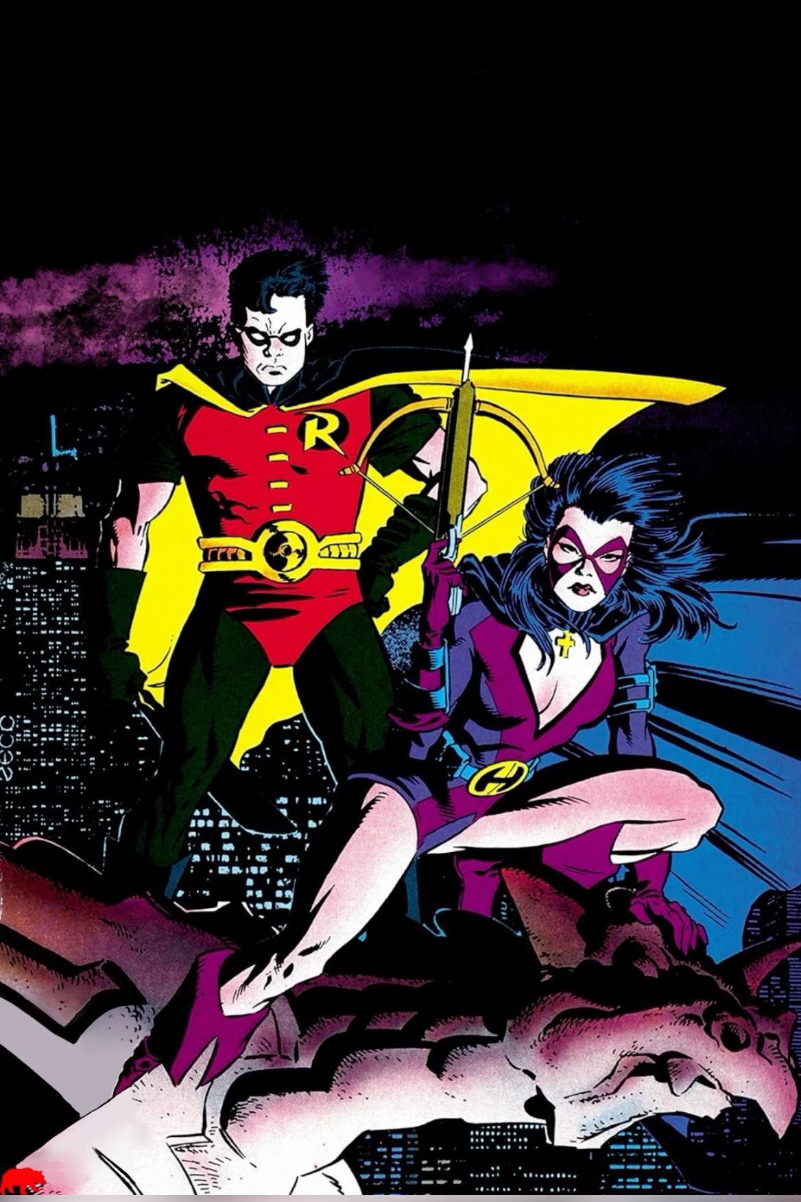 When "Tiny Knuckles" Inamorato was killed, mafia big names violently vied for his position and Batman promptly arrested Tommy Fortune, whom the press and police figured was favourite for don. Meanwhile, Huntress busted a subtler operation, apprehending mobsters torching a seemingly ordinary restaurant, used by the mafia to launder drug profits. After the books drew suspicion, the mafia planned to cash in on insurance and find another front. Helena correctly deduced that the frontrunner for don was dark-horse Mandy DePaulo, the envious daughter of a low-ranking Rizzi soldier, who grew up with Helena. Huntress expected DePaulo to kill Mickey Silver to climb the food-chain and she foiled her ambush with Robin's aid.[31] The duo interrogated Silver, confirming Huntress' theory but while they staked out DePaolo's meeting, the mysterious Deathangel however crashed it, opening fire on DePaolo's men before fleeing. Recognising Deathangel, Helena searched her old boxes and found a comic of Deathangel given to her by Mandy's priest brother Danny as a child.[32] Helena deduced that Danny became Deathangel to straighten out his mobbed up sister. At Danny's church, Huntress prevented Deathangel from killing Robin, although he escaped. Interrogating mob associates, Huntress and Robin learned that Mandy planned a sit-down with two capos in a landfill, which Huntress connected to Silver's waste-hauling contracts. Mandy was about kill the capos and takeover Silver's action when Huntress and Robin intervened. The duo subdued Mandy's men but Danny went after Mandy, who killed him. Furious, Huntress wanted to kill Mandy to avenge her brother but begrudgingly conceded to Robin's pleas and only apprehended her.[33]