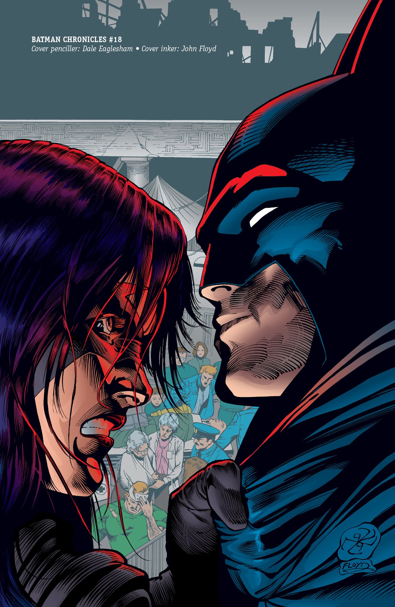 Huntress called on her JLA teammates for support while in the thick of rescuing vulnerable Gothamites and trying to quell angry mobs. Huntress was furious when Superman explained that their presence in Gotham would be illegal but was emboldened by the JLA's trust in her as the lone JLAer on the ground.[67] As the Bat, Helena formed an alliance with the returning Batman after he witnessed her guiding a destructive and lost Ferak, a sentient creation of Poison Ivy's, back to its home in Robinson Park.[68] Alongside Batman, The Bat helped to take back much of Burnley and Coventry from the Black Mask's False Facers, and single-handedly defeated Black Mask during his assault on the Gotham Clocktower.[69][70][71] The Bat had an unfriendly encounter with the GCPD Blue Boys but insisted that they were welcome them in her territory. She also directed the homeless in the south to the Blue Boys for sanctuary.[72] Huntress got acquainted with Cassandra, one of Oracle's informants when helping Cassandra fend off armed thieves, and later caught up with her while helping the injured to a medical camp.[73] In late May, with gangs vying for territory, Batman tasked The Bat to protect their own territory by herself while he followed up on intel in Two Face's turf, inadvertently walking into a trap. When Penguin and his gang invaded their territory, The Bat made a stand, taking out a dozen men, saving a hostage and seriously wounding Penguin, but she was vastly outnumbered and retreated. With much of their territory lost and 6 people killed, Batman and Helena's partnership broke down.[74][75][76]