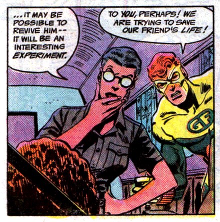 During the Millennium crossover event, it was revealed that Dr. Jace had been working for the Manhunters. She used the psychic trigger in Metamorpho's mind to take control of him, and used him to incapacitate the rest of the Outsiders. When the team came to they were strapped to tables in Jace's lab, which they managed to escape from. In the ensuing fight Looker tricked Metamorpho into attacking Dr. Jace. When Jace fired her weapon at Metamorpho, it created an energy surge that killed her, and effectively killed the Element Man.[3]