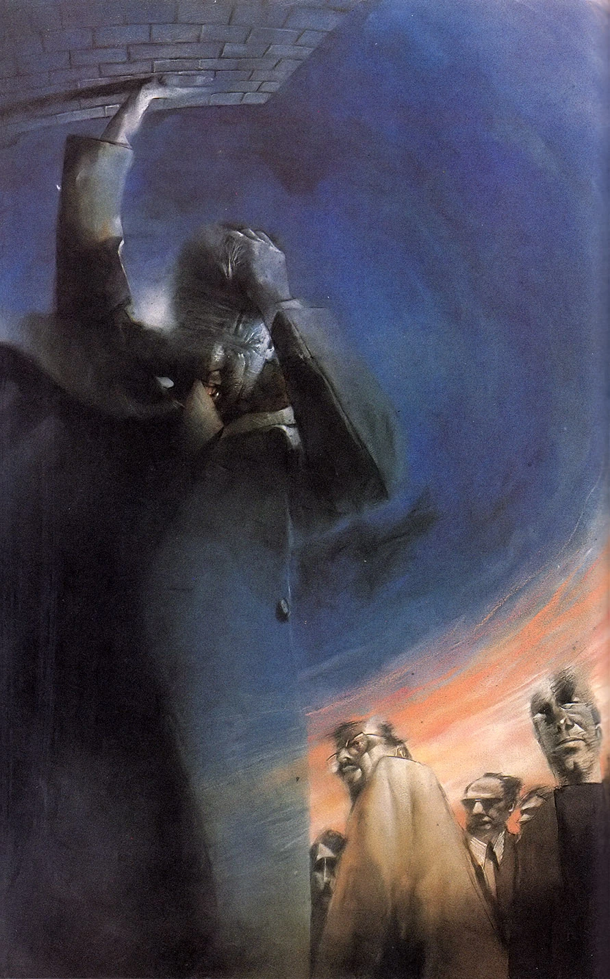 Alone again, John rents a room and contemplates his misery. A pile of dirty clothes begins moving by itself, pantomiming the movements of a human being. The being inhabiting this "clothes-man" begins chasing John, who runs out into the night. Finally, John stops at the demolition site he had seen earlier and sits down to rest. He doesn't seem to care that the building is still in the process of being destroyed by a wrecking ball. Suddenly, black tar from the walls begins stretching forward, as if to attack him. John flashes his cigarette lighter at the goo, and escapes.