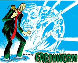Earthworm became one of the various villains who accepted the demon Neron's offer in which he was given superhuman powers in exchange for his soul.[3] He along with Cheetah and Blackguard attacked the Warriors bar, and he killed several patrons and employees. Cheetah and Blackguard were defeated by Joe Gardner, but Wormhole escaped to his underground lair with several victims.[4] Earthworm was eventually tracked down by Warriors staffers Arisia, Tiger Man, and Veronna, and was then cryogenically frozen.[5]
