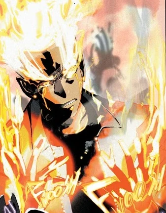 Hotstreak is a male super-villain with pyro-kinetic powers and an enemy to Static. Their rivalry is based on attending the same high school, where their relationship as students was antagonistic. His ability to generate and control flames stems from exposure to Quantum Juice during the Big Bang incident, making him a Bang Baby. Hotstreak was created by Dwayne McDuffie, Robert L. Washington III and John Paul Leon, first appearing as part of Milestone Media's Dakotaverse in Static #1. (1993)