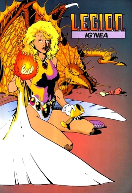 Ig'nea lawed L.E.G.I.O.N. to the uninhabited world of Bartok IV, where along with her henchmen. This gambit failed and Ig'nea and her men are taking in to custody.