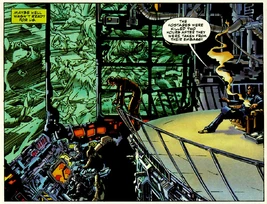 I.O. and its facilities were attacked by the High's Reaper clones during the "Number of the Beast" incident and was thereafter heavily affected by Armageddon. Many of I.O.'s safehouses were vitally used as near permanent refuge for some post-Armageddon survivors as they were stockpiled with supplies, goods, and weapons that would last for years.[1] The fate of I.O. was left at the hands of John Lynch, who then made one survivor among some refugees that were dropped at one of I.O.'s safehouses by the Wildcats as the current director of I.O. and as well as the "seventeenth in line for the presidency."[2]