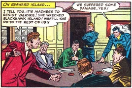 While the Cold War was going on, in 1952, almost all of the world's island nations convened a conference, and united in a single democratic federation. Blackhawk Island was a charter member, as were Seaward Island and Peurifoy Island. In the negotiations that followed, it became clear that the only international figure who was universally trusted by enough of the Federation's potential membership, was Blackhawk. At first the famous aviator rejected the Conference's nomination, but at that time, the infant Island Federation was under attack by an international air pirate calling herself the Valkyrie. Under this threat, many potential member states simply refused to join unless Blackhawk took command; so Blackhawk reluctantly accepted the office.