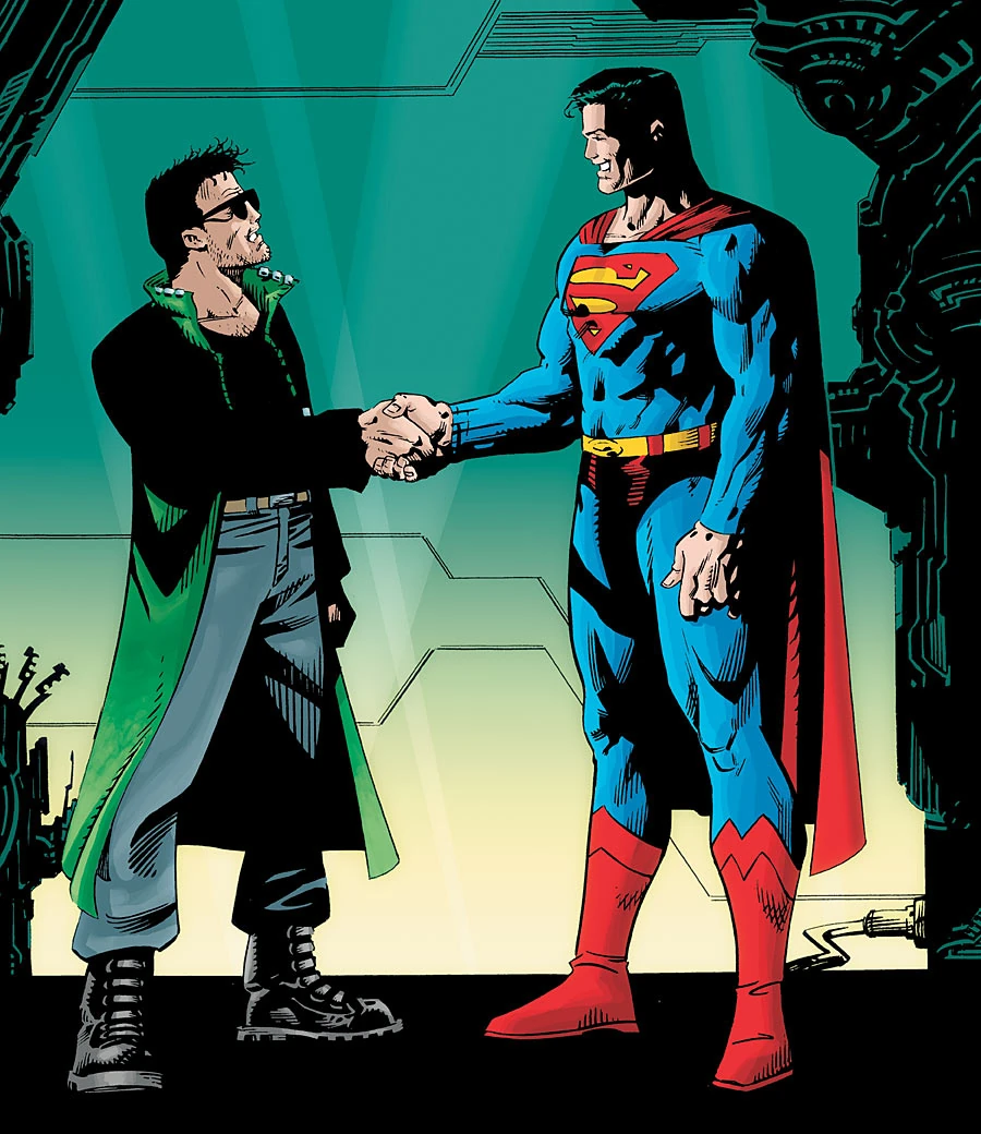 Wonder Woman reasons that as warriors, and with Green Lantern and Flash powerless, she and Tommy should attempt to regain control of the Watchtower's communications and summon help from Earth's superheroes. Wonder Woman and Tommy begin the arduous task of climbing to the communications level. Soon after they are attacked by a group of the parasites and Tommy is forced to go alone as Wonder Woman fights back. As Tommy reaches the communications level, he is greeted by Superman who has been taken over by one of the parasites.