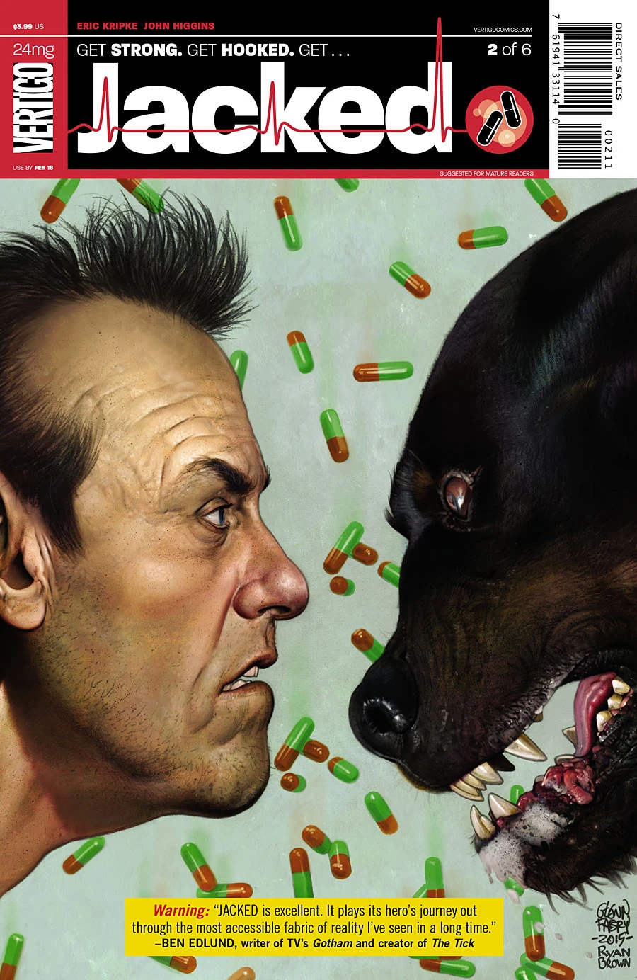"Hero Trip": The synopsis for this issue has not yet been written.Jacked #2 is an issue of the series Jacked (Volume 1) with a cover date of February, 2016. It was published on December 23, 2015.