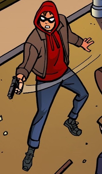 Jason Todd was an orphan whose life had already been full of hardships before he met Bruce Wayne, who was the vigilante Batman. His brother Danny had fallen in with a street gang named the "Wolves", whose psychotic leader Alpha made new members take an initiation rite, which was to be on the lookout for the police. Danny did so but fell to his death after the fire escape he was on collapsed. Batman had seen this and went after the Wolves, but was already beaten to the punch by Jason, who had come to their hideout to take revenge. Bruce was impressed by him fighting everyone there, but stopped him from shooting at them.[1]