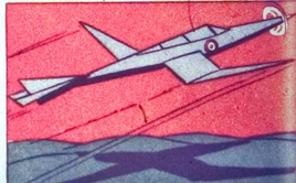It uses a Uranium 235 motor, providing it with the same amount of power as contained in a nuke. At high altitudes it is nearly invisible to the naked eye due to it's plastic blue alloy. However, if the pilot presses a switch, it can release a fluid through small slits in the body, creating a vapor trail behind it. This is mainly used to allow allied aircraft to follow along in formation.