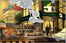 Jitters, also known as CC Jitters, is a chain of coffee stores in Central City. They also operate smaller stalls under the name Jitters Express.