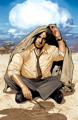 John lit a cigarette, Only to have it stopped by blood. That blood was revealed to be, Kal-El's blood.[4] John tried to convince Kal to help fight the evil, But Clark just advised him to go to The New Superman. John told Clark that Brainiac is looking for him. Clark still won't listen, So John slapped him and taunted him by saying that they both turned their backs on the world.[5]