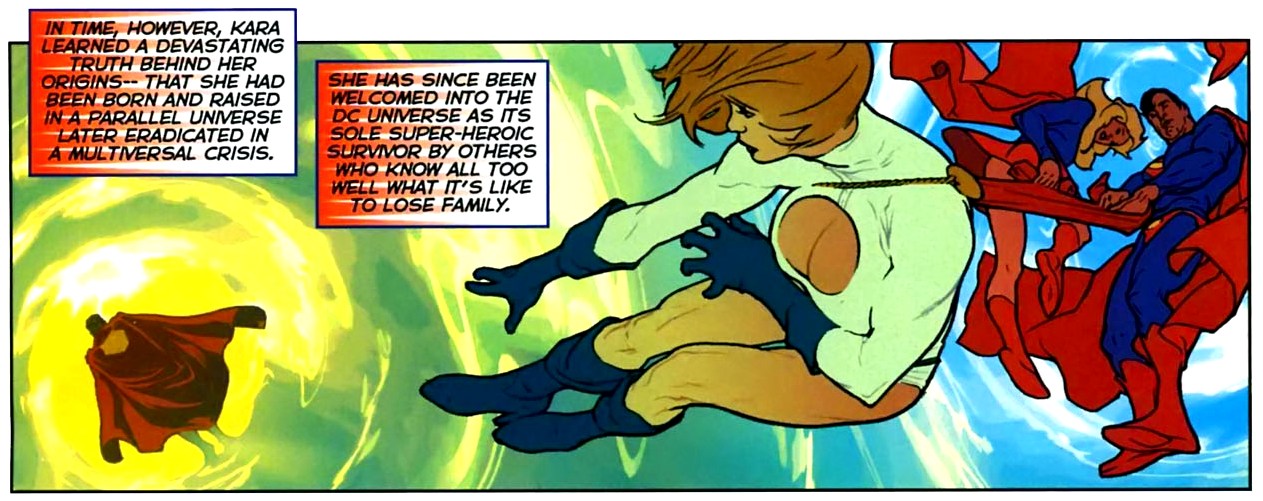 During the events of Infinite Crisis, the Psycho-Pirate showed Kara multiple versions of her origin in an effort to drive her insane, but eventually revealed that she was not only Kryptonian but also a survivor of the entire Earth-Two universe.