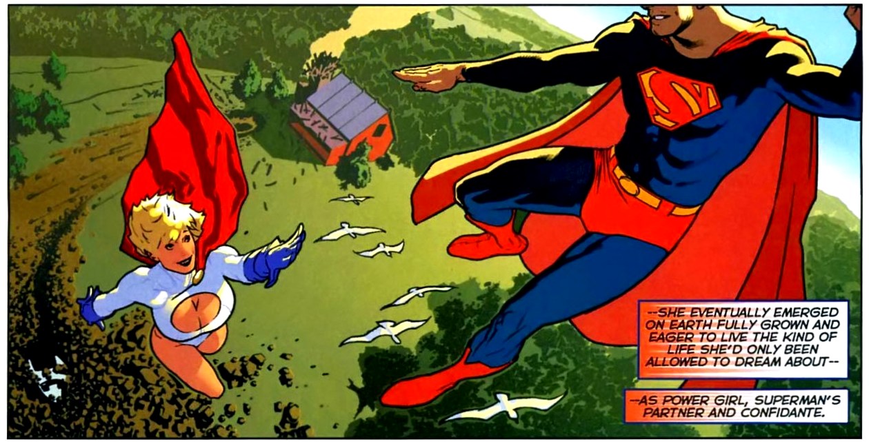 - Power Girl's original Post-Crisis origin was reminiscent of the Pre-Crisis Mon-El and Halk Kar's origins of suffering from amnesia and being mistaken for a relative of Superman.