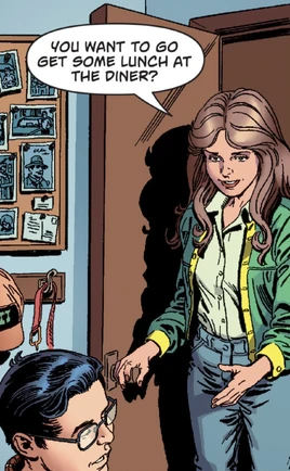 During the Metal Wars, Superboy-Prime was part of an assembled force of heroes and villains fighting the forces of the Last 52 Multiverse. When he punched The Darkest Knight he had a vision of himself and Laurie grown up and with a child. Clark sacrificed himself in the fight and suddenly found himself in his bedroom, reading Dark Nights: Death Metal The Secret Origin #1 and looking at his own dead body on the page. Laurie arrived to invite him out to lunch. As they walked together, Clark questioned her and realised that she had no memory of the Crisis on Infinite Earths, or any of the stories that came after. As they were walking, a kid chased a ball into the street, directly into the path of a car. Laurie saw Clark run out and lift the car above his head to save the boy.[1]