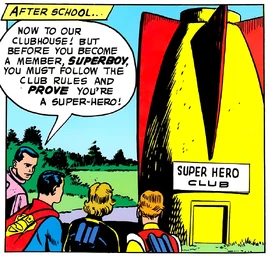 After Cosmic Boy, Lightning Lad and Saturn Girl formed the Legion of Super-Heroes, they began searching for a headquarters. When they visited the Mystery Rocket in Smallville, they knew it would be a fitting "Super-Hero Clubhouse." After all, it was the legend of Superboy that inspired the Legion in the first place.