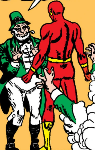 Leprechauns are legendary diminutive fairy-folks, who inhabit Ireland. The original Green Lantern became involved with a leprechaun named Eogan Cuailgne (pronounced Owen Cooley) when Eogan found himself exiled from Ireland. Wonder Woman also met a trio of leprechauns in her adventures.