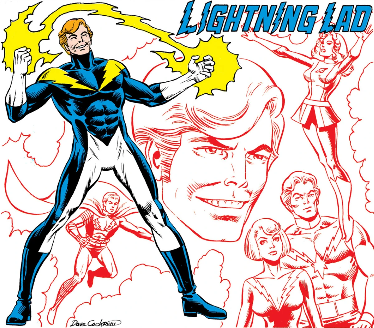 Lightning Lad is a founding member of the Legion of Super-Heroes in the 30th Century. Born on the planet Winath, he gained electric powers during an encounter with Lightning Beasts on Korbal. He is known for being fun-loving but hot-headed and aggressive. Every Winathian has a twin, and his sister Ayla is Lightning Lass. The exception to this rule is his older brother Mekt, who was labeled a freak and became the villain Lightning Lord. His best friend is Legion co-founder Cosmic Boy, and his wife is co-founder Saturn Girl. Their two children are Graym Ranzz, and Garridan Ranzz who grows up to become the villain Validus. In Reboot Legion continuity, Garth uses the alias Live Wire. This version has also been a member of Workforce. In Prime Legion continuity, he uses the name Lightning Lad again. Lightning Lad was created by Otto Binder and Al Plastino, first appearing in Adventure Comics #247. (1958)