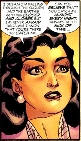 You know something weird? I've had the same dream almost every night ever since I was a little girl. I dream I'm falling through the clouds and the Earth's getting closer and closer, but I'm never afraid because I know that you're there to catch me. Can you believe that? You catch me almost every night. Always in the nick of time... and now you're real, Superman. As real as any of this.