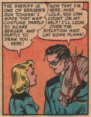At Benson's ranch, Lash put together a plan to lure Berger from the Silver Queen Mine so Lola, her father, and Benson could seize the mine. Lola once more displayed her prowess with a whip in the ensuing battle at the mine, impressing even Lash. After obtaining the forged bill of sale and defeating Berger, they turned the mine back over to the Morse family.[1]