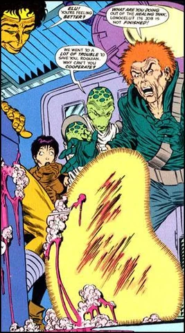 He joined the Omega Men alongside Darkfire of Tamaran when both were selected from a field of trial applicants on Okaara. Elu was with the core team, led by Tigorr when they were ambushed.