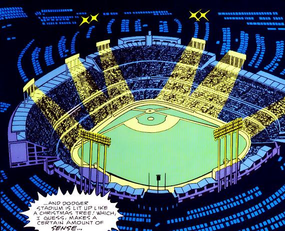 The Los Angeles Dodgers, formerly the Brooklyn Dodgers, are a baseball team based in Los Angeles (and before that, Brooklyn). In Brooklyn, they played at Ebbets Field; in LA, they had Dodger Stadium.