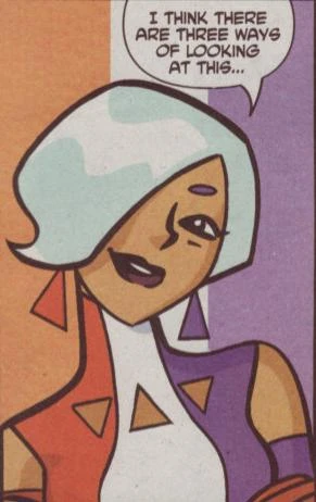 After a battle against Imperiex in the 41st Century universe, the destruction of the plane of existence; Triplicate Girl lost one of her bodies in an anti-matter rupture. Which the loss of her third she redubbed herself Duo Damsel. She later dyed her hair black and changed her costume to Orange and Purple with black piping (presumably as a sign of mourning). Initially it was hard for her to readjust to only having two bodies, but she has adapted to it quite well. After Brainiac's defeat, the future is restored with her neutral third returning to the 31st century to the other's delight. After that, she redubs herself back to Triplicate Girl.