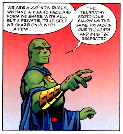 - Telepathy: Martians have the ability to read the minds of others and project their thoughts to varying degrees. They can also project their mental essences into a gestalt community known as the "Great Mind". Through this, the community can enhance the telepathic strength of other Martians. This power can also enable them to reverse the effects of amnesia or psychological brainwashing. [3]