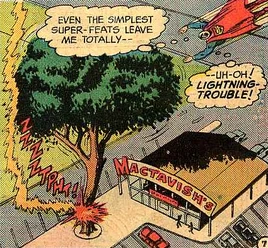 MacTavish's grew to even greater prominence after Superman frequented its restaurant in Metropolis to sate his hunger during an incident where his body began rapidly losing energy which forced him to eat over sixty burgers a minute for several days. Ever since then, MacTavish's began promoting itself as the place where Superman goes to eat.[1]