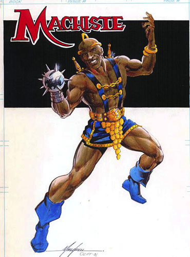 Machiste is a powerful warrior native to Skartaris. He is the closest friend and ally to Warlord. Warlord is responsible for rescuing him from slavery, and helping him become King of Kiro. His right hand has been replaced with a mace, as it was severed in combat. Mariah Romanova is his lover.