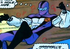 Very little is known about him or the appearance he hides beneath his full-body suit. However, he is still tangible as an energy being, and a solid hit will knock him back into his regular state and leave him vulnerable. In various outings with his team, Mainline has sabotaged his teammates' actions by a combination of bad luck and poor planning.