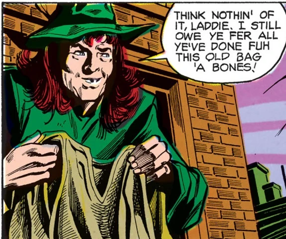 Mary Ann Warner was a woman living in Park Row who made her money by scavenging through trash and selling the salvageable pieces to second hand and consignment stores and who helps Batman by passing along information and gossip she hears in her crime ridden neighborhood.[1] Batman has helped her before and tried to offer her help in getting employment and better housing but Mary always turns him down.