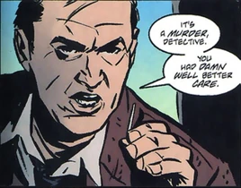 He worked on the investigation of Renée Montoya. He was responsible for Montoya's breakout and delivery to Two-Face; when confronted by the police, he pleaded that he was coerced by Two-Face, who had kidnapped his child.[1]