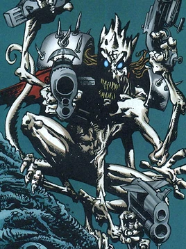 Since the close of World War II, the Mawzir has served the Arkannone, the Lords of the Gun, presiding over their own cordite-reeking corner of Hell. In another time, the Mawzir was not one, but five Nazi butchers whose atrocities ended under Russian gallows. As the Arkannone's elite agent, the Mazir was sent above to recruit the metahuman Hitman Tommy Monaghan into their gun-slinging fold. Monaghan refused, humiliating the Mawzir utterly. For his defeat, the Arkannone destroyed the Mawzir. But even hellspawn are granted second chances. Resurrected by the Arkannone, the Mawzir returned to Earth to kill Monaghan. To save himself, Monaghan enlisted the demon Etrigan to retrieve the Ace of Winchesters—the one gun capable of snuffing out the Mawzir—from the bowels of Hell. And in short order, Etrigan decimated the Arkannone and Monaghan ended the Mawzir's threat.