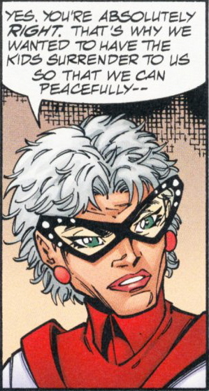 Years later, it was revealed that Merry was still alive, and she had a daughter Jacqueline Pemberton. Merry was then reunited with her son. She became a founding member of Old Justice, a group of retired former child super heroes who joined together to prevent other young heroes from following their example and endangering themselves.
