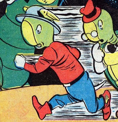 When Prince Highness and Prince Lowness bet on what would happen if a completely honest man was given incredible powers, they found Merton McSnurtle. As the laziest man around, McSnurtle was too lazy to ever commit a dishonest deed. The princes brought him to Vulcan, damaging his shell in the process. On Vulcan, McSnurtle was trained in athletics and arithmetic. What McSnurtle didn't realize was while that on Vulcan his weakling training efforts would translate to him being the most powerful man back on Earth. When the Princes sent him home, Prince Highness sent along an automatic conscience in his repaired shell that would pester McSnurtle until he was forced to act for good. Dressed in a heroic outfit, McSnurtle would fight crime as the Terrific Whatzit.[1]
